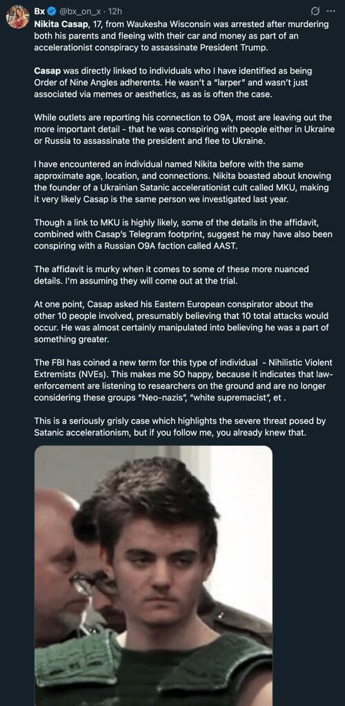 Nikita Casap, 17, murdered his mother and stepfather in Wisconsin, stole their money to fund an attack on Trump, hoping to spark a ‘revolution.’ He now faces murder charges after hiding their bodies..— Chris from Massachusetts AKA TommyboyTrader (@autumnsdad1) April 13, 2025