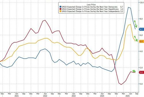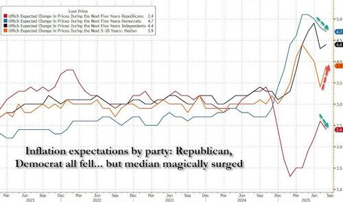 UMich taking a flamethrower to what little was left of its credibility - it's not just 1Yr inflation expectations: Republican, Democrat 5Yr inflation expectations slumped, but the "median" magically soared