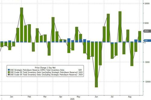 With the addition of 509k barrels to the SPR, total commercial crude stocks rose for the first time in 3 weeks…
