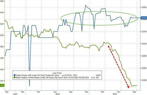 Bloomberg reports that US oil has retreated more than 10% this year as OPEC+ has boosted production targets at a rapid clip to reclaim market share from rival drillers. At the same time, producers from outside the alliance have ramped up output, while concerns about demand have intensified as the Trump administration imposed a wave of trade tariffs.