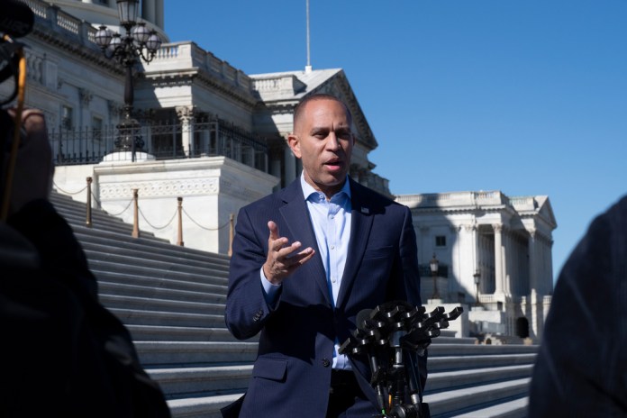 House Minority Leader Hakeem Jeffries (D-NY) appeared to stand by Virginia attorney general candidate Jay Jones in comments to reporters outside the Capitol on Thursday.